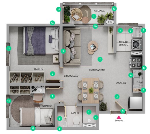 - 2 dormitórios